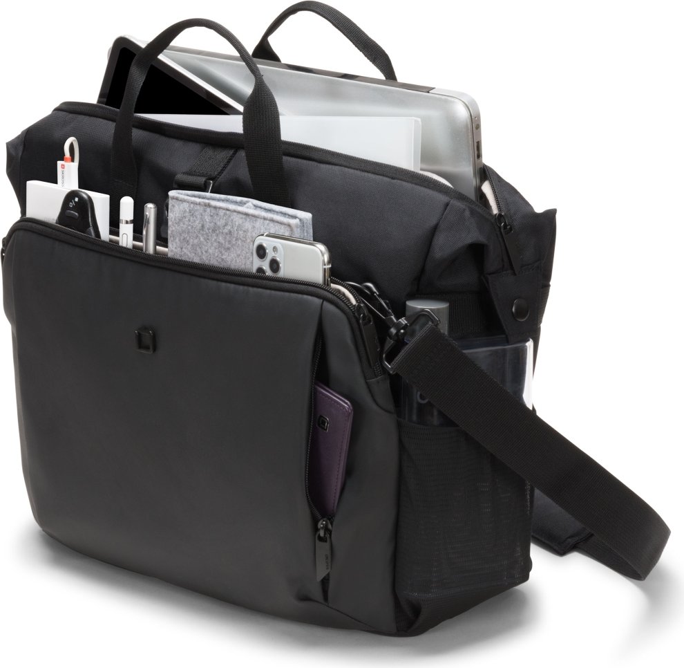 Brašna Eco Top Traveller GO nabízí ideální ochranu pro notebooky. Oddělovací stěna systému fitall v prostoru pro notebook bezpečně chrání váš notebook a automaticky se přizpůsobí velikostem od 13 do 15,6". Zasouvací kapsa poskytuje spolehlivou ochranu tabletům do velikosti 12,9". Prostorná hlavní část je rozdělena tak, aby bylo možné odděleně ukládat dokumenty a příslušenství. Otevřená rozšiřitelná přihrádka na aktivní výbavu, jako jsou sportovní boty, helma, podložka na jógu atd. včetně bočních kapes z elastické síťoviny a kovového háčku pro upevnění. Přední kapsa má praktické přihrádky, takže si můžete uspořádat mobilní příslušenství, jako je smartphone, pera nebo nabíječky. V zadní části se nachází přihrádka na doklady pro snadné uložení dokumentů. Tašku můžete pohodlně přenášet pomocí držadel nebo použít nastavitelný polstrovaný ramenní popruh. Taška je vyrobena z vodoodpudivého materiálu, který ochrání obsah i v deštivých dnech. Taška Eco Top Traveller GO je tedy ideální pro vás, pokud jste stále na cestách a chcete podpořit recyklaci PET lahví ekologickou taškou.