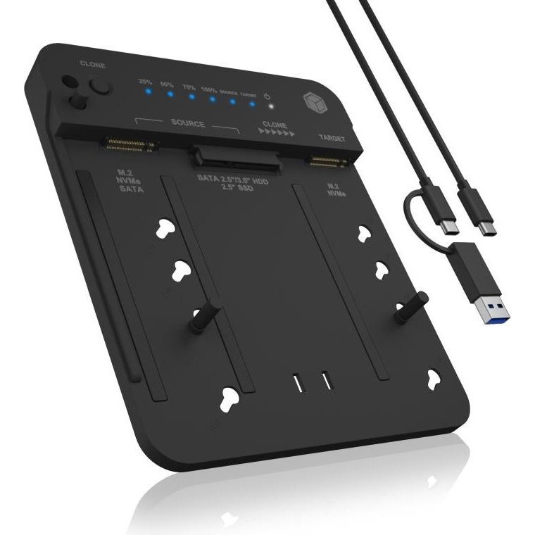 Objavte dokonalú flexibilitu s touto klonovacou a dokovacou stanicou pre 2,5"/3,5" SATA a M.2 NVMe SSD disky. Vďaka inštalácii bez náradia a klonovaniu jedným tlačidlom bez PC je zálohovanie a upgrade systému jednoduchší než kedykoľvek predtým. Stanica podporuje klonovanie z rôznych typov diskov na cieľový M.2 NVMe SSD. Rozhranie USB 3.2 Gen 2 zaručuje prenosové rýchlosti až 10 Gbit/s. Ideálne riešenie pre rýchlu zálohu dát alebo plynulý prechod na výkonnejší SSD disk.