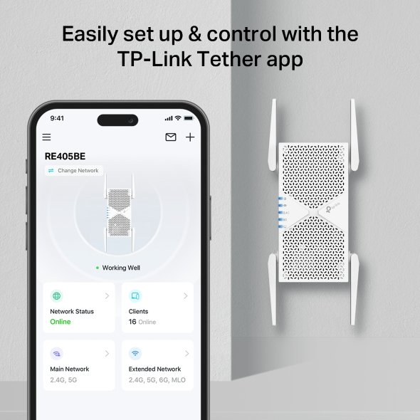 TP-Link RE405BE – BE6500 Dual-Band Wi-Fi 7 Range Extender