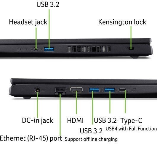 Acer Nitro V 15 AI (ANV15-42-R464) - Windows 11 Home - AMD Ryzen™ 7 7445HS - 16 GB DDR5 Memory + 16 GB DDR5 Memory - 1024GB PCIe NVMe SSD PM4 + M.2 (SSD) - 15,6" FHD 1920x1080 IPS Anti-Glare 165Hz 300nits - NVIDIA® GeForce RTX™ 3050 6G-GDDR6 (2C*512*16*3) 16Gbps - Wifi 6E 802.11ax 2x2 MU-MIMO + BT 5.3 - HD TNR Camera with 2Mic. - Amber backlight KB - 3x USB 3.2 Gen1 - 1x USB Type-C: USB4® 40GBps - DisplayPort over USB-C via dGPU - USB charging 5 V; 3 A - DC-in port 20 V; 65 W - HDMI 2.1 - RJ-45 - DTS® X: Ultra Audio - Dual-fan systém - Nitro Sense App - Copilot Key - 57Wh Li-ion battery - 135W 5.5mm Slim AC adapter PCR50% - Obsidian black