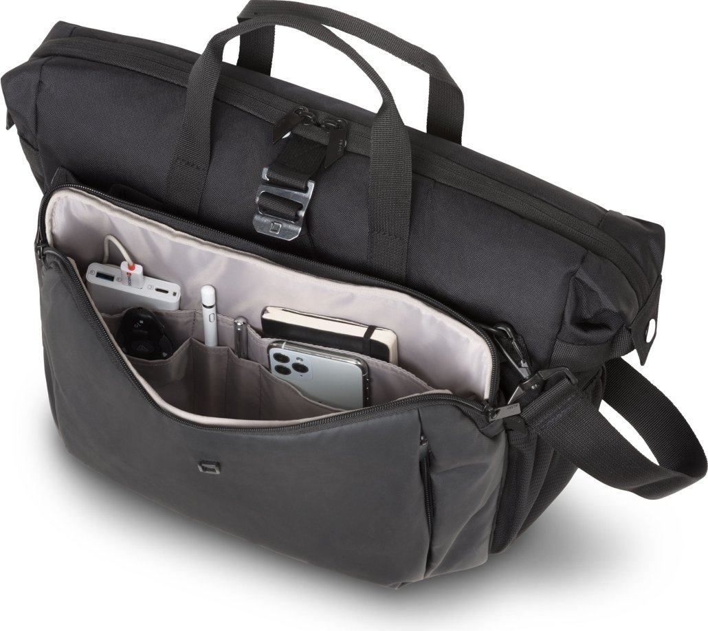 Brašna Eco Top Traveller GO nabízí ideální ochranu pro notebooky. Oddělovací stěna systému fitall v prostoru pro notebook bezpečně chrání váš notebook a automaticky se přizpůsobí velikostem od 13 do 15,6". Zasouvací kapsa poskytuje spolehlivou ochranu tabletům do velikosti 12,9". Prostorná hlavní část je rozdělena tak, aby bylo možné odděleně ukládat dokumenty a příslušenství. Otevřená rozšiřitelná přihrádka na aktivní výbavu, jako jsou sportovní boty, helma, podložka na jógu atd. včetně bočních kapes z elastické síťoviny a kovového háčku pro upevnění. Přední kapsa má praktické přihrádky, takže si můžete uspořádat mobilní příslušenství, jako je smartphone, pera nebo nabíječky. V zadní části se nachází přihrádka na doklady pro snadné uložení dokumentů. Tašku můžete pohodlně přenášet pomocí držadel nebo použít nastavitelný polstrovaný ramenní popruh. Taška je vyrobena z vodoodpudivého materiálu, který ochrání obsah i v deštivých dnech. Taška Eco Top Traveller GO je tedy ideální pro vás, pokud jste stále na cestách a chcete podpořit recyklaci PET lahví ekologickou taškou.