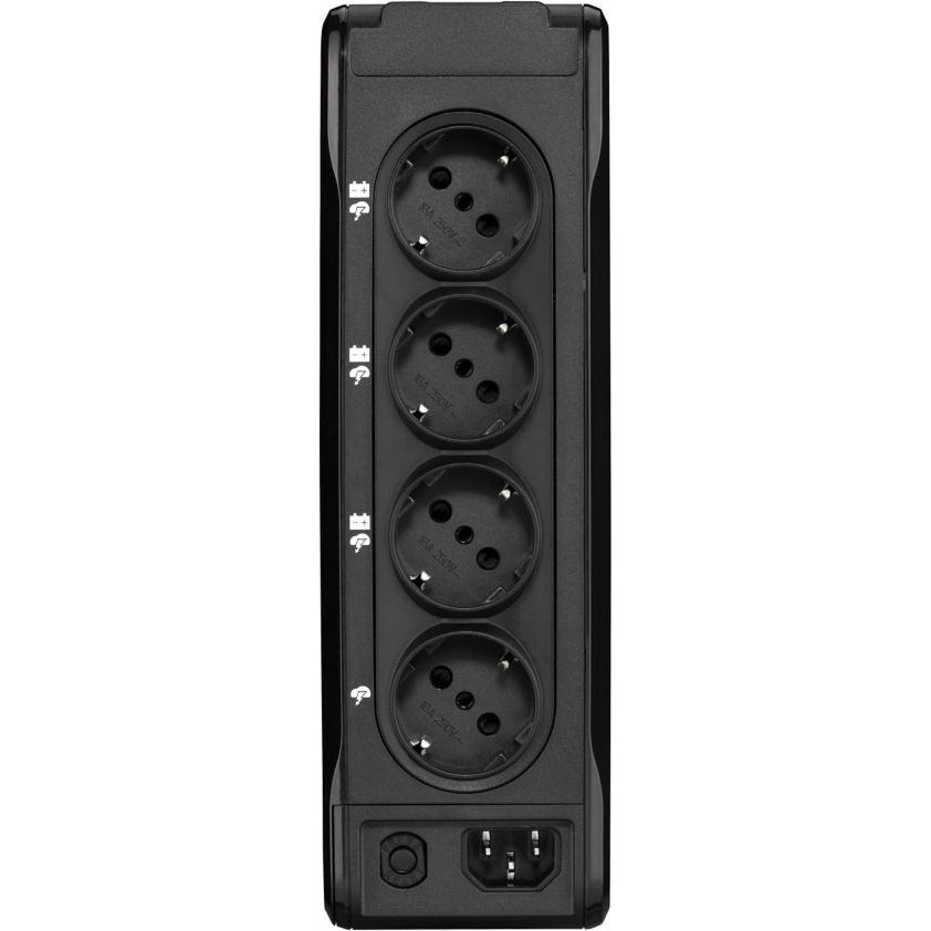 Výstupní přípojky: (3) Schuko, (1) Schuko surge only