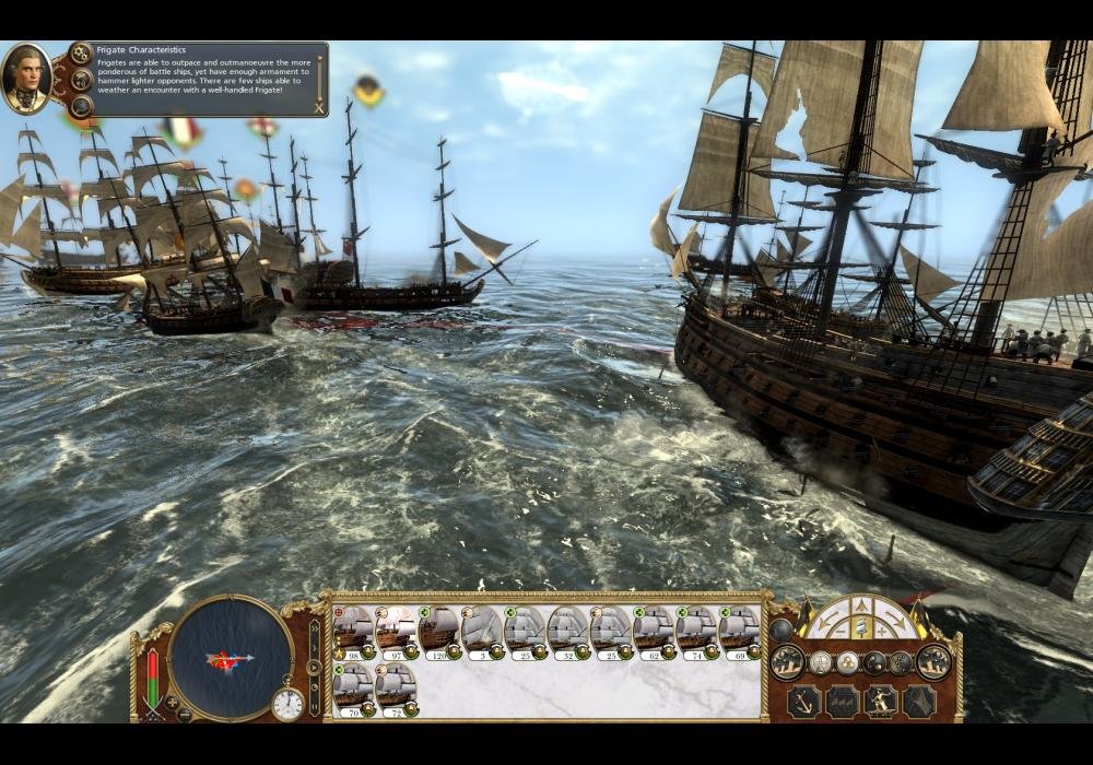 Empire: Total War je vynikající hra určena pro platformu PC, která vám představítrojrozměrné námořní bitvy. Budete mocisami řídit obrovské flotily i jednotlivé lodě a brázdit s nimi zpěněné vody. Slavné vítězství či potupná porážka leckdyzávisí i na přízni či nepřízni počasí,které na moři hraje velmi důležitou roli. Když nepřítele rozstřílíte z děl, můžete jeho loď zahákovat, vyslat na palubusvé námořníky a utkat se s jeho posádkouv boji muže proti muži.