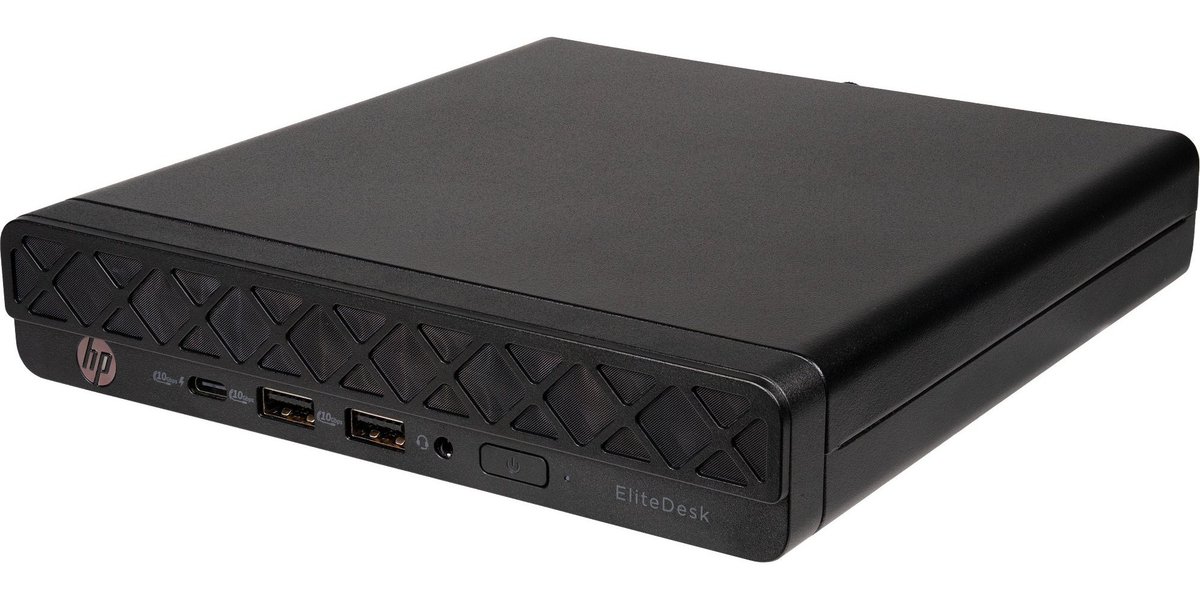 998Z5ET - HP EliteDesk 8 Mini G1a, procesor Ryzen 5 Pro 215, RAM 1x16 GB DDR5, SSD 512 GB M.2 NVMe, grafika Radeon 740M, OS Win11P64, WiFi 6e + BT, usb HP 125 klávesnice a myš, bez MCR, bez optické mechaniky, zdroj 90W externí, grafické výstupy: 2xDisplayPort+HDMI+USB-C (4.0, DP 2.1, PD 100W), záruka 3-3-3