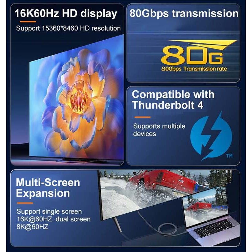 * Rozlišení videa 16K@60Hz, až 80Gbps (podporuje DisplayPort Alt Mode 2.0)