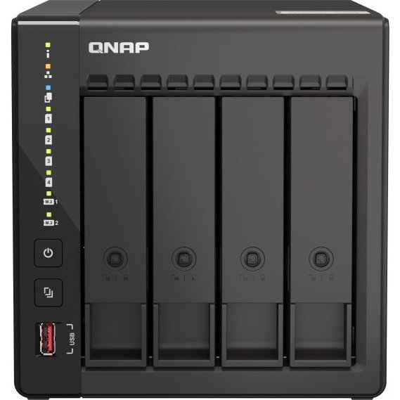 * HDD 1-4, stav, LAN, USB port, M.2 port