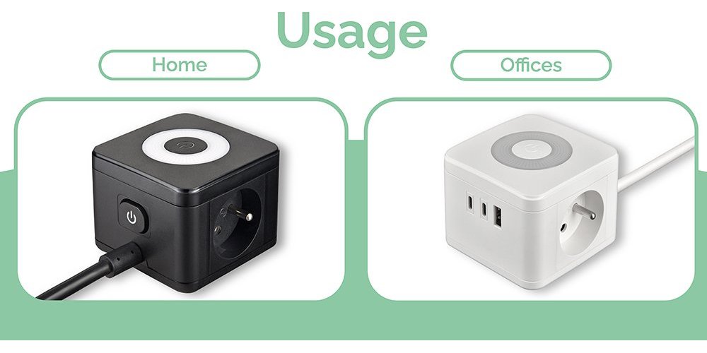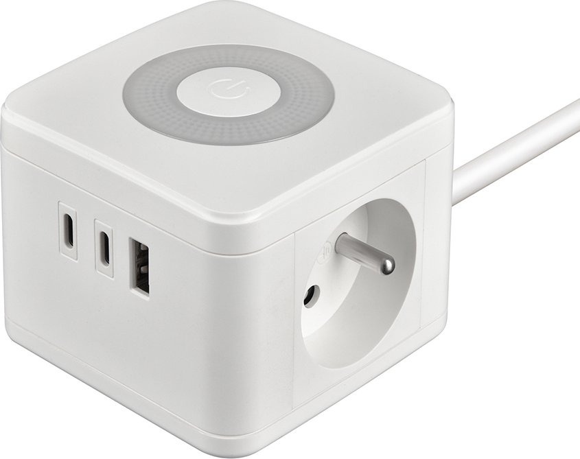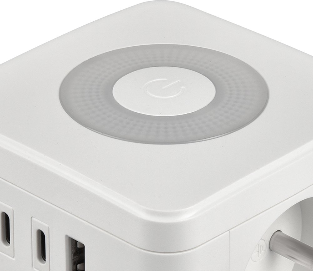 Síťový adaptér • rozbočovač • zásuvka • 2 x AC (230V) výstup • 1 x USB-A (5V/3A) • 2 x USB-C (5V/3A) • dotykové světlo se třemi intenzitami svícení • kompaktní rozměry a design • kabel 1,4 m • možnost nabíjení až 5 zařízení současně
