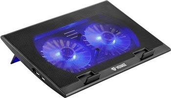 Tenká a elegantní chladicí podložka vhodná pro přenosné počítače až do velikosti 17". Nízká hmotnost a ergonomický design umožňují její používání na stole nebo klíně, když sedíte nebo odpočíváte na pohovce nebo v posteli. Ventilátor s nízkou úrovní hlučnosti vás nebude během práce rušit a navíc jej lze kdykoli zapnout nebo vypnout. 2 porty USB lze používat pro přenos dat nebo nabíjení jiného zařízení (1 port USB se používá pro připojení napájení chladicí podložky z přenosného počítače).
