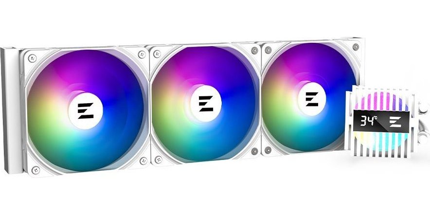 Vodní chladič určený pro chlazení široké škály procesorů. Vyznačuje se vysokou kvalitou, výkonem a spolehlivostí. Disponuje třemi 120 mm velkými ventilátory s ARGB podsvícením. Odolné opletené hadice zaručují díky dostatečně širokému průměru plynulý průtok chladicí kapaliny. Chladič je dodáván se speciální teplovodivou pastou ZM-STC10 pro maximální odvod generovaného tepla.